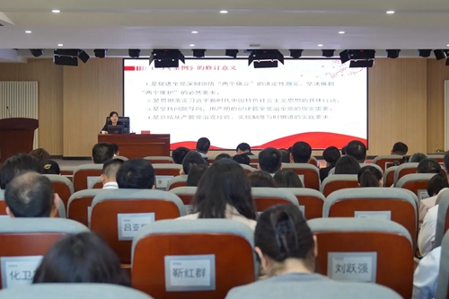 市紀(jì)委監(jiān)委駐城發(fā)集團(tuán)紀(jì)檢監(jiān)察組副組長(zhǎng)姬小靜,以《做遵規(guī)守紀(jì)的明白人》為題,分別從《條例》的歷史沿革、修訂意義、新變化和特點(diǎn)等方面,逐章逐條深度解讀新修訂的《中國共產(chǎn)黨紀(jì)律處分條例》。深刻領(lǐng)悟全面從嚴(yán)治黨的實(shí)踐要求,切實(shí)學(xué)出政治忠誠、學(xué)出清正廉潔、學(xué)出擔(dān)當(dāng)作為。