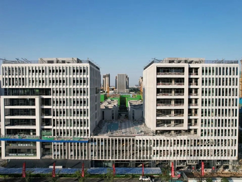 金岱智慧產(chǎn)業(yè)園作為河南省“三個一批”簽約重點項目,鄭州市第一批重點建設(shè)小微企業(yè)園項目,自2022年4月13日完成摘地以來,建設(shè)招商同步進(jìn)行。目前園區(qū)一期已全部封頂、正在進(jìn)行外立面和景觀施工,園區(qū)二期已經(jīng)封頂,同時在進(jìn)行主體建設(shè),部分樓棟二層主體結(jié)構(gòu)建設(shè)已完成,預(yù)計2024年全園投產(chǎn)。園區(qū)招商成果顯著,已招引智能制造、科技型企業(yè)近四十家,高質(zhì)量產(chǎn)業(yè)發(fā)展藍(lán)圖已然呈現(xiàn)。