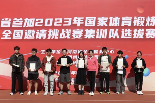 10月22日,河南省參加2023年國家體育鍛煉標(biāo)準(zhǔn)全國邀請?zhí)魬?zhàn)賽集訓(xùn)隊選拔賽在鄭州奧體中心西側(cè)田徑訓(xùn)練場火熱展開?,F(xiàn)場數(shù)百余運動員,通過30秒跳繩、男子1000米跑、女子800米跑、立定跳遠(yuǎn)、繞桿跑、坐位體前屈等一系列的體能測試,在秋日暖陽中,以飽滿的熱情和能量,挑戰(zhàn)自我,刷新體能成績。