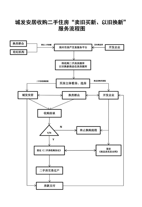 換房群眾可自主選擇通過(guò)“鄭州市房產(chǎn)交易服務(wù)平臺(tái)”或其它渠道掛牌出售二手住房、選購(gòu)新建商品住房,自由交易實(shí)現(xiàn)“賣舊買新、以舊換新”。(二手住房不受城發(fā)安居公司收購(gòu)條件限制、新建商品住房須位于主城區(qū)范圍內(nèi))