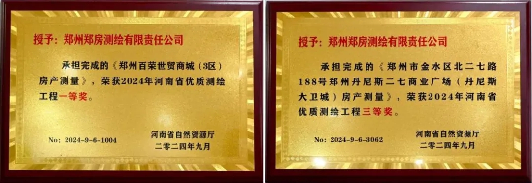 實(shí)力+認(rèn)可!鄭房測(cè)繪獲得兩項(xiàng)全省測(cè)繪最高獎(jiǎng)!