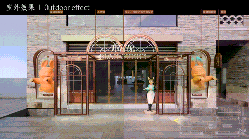麥陌的門店設(shè)計(jì),更是一場將商代青銅文明與烘焙生活完美融合的視覺盛宴。建筑整體以金色與木色為主,墻上的裝飾、立柱上的浮雕,像是從商代青銅器上拓印而來。店內(nèi)面包陳列臺選用原木與石材,呼應(yīng)“麥”的自然本真。烘焙區(qū)采用開放設(shè)計(jì),可以預(yù)見,烤爐的麥香將從這棟建筑飄至街區(qū)每一個(gè)角落,讓行人在不知不覺中放慢腳步。