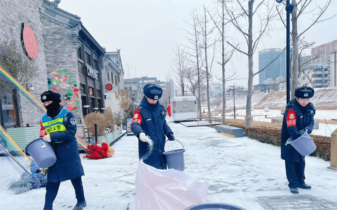 為保障亳都·新象街區(qū)安全運行,商都發(fā)展公司提前部署應對舉措。備足除雪物資,組織物業(yè)連夜掃雪除冰;通過商戶群、街區(qū)循環(huán)廣播推送防寒防凍、防滑提醒;安排工程人員對設施設備做足保溫防護,全方位排查隱患,為商戶與市民筑牢安全屏障。