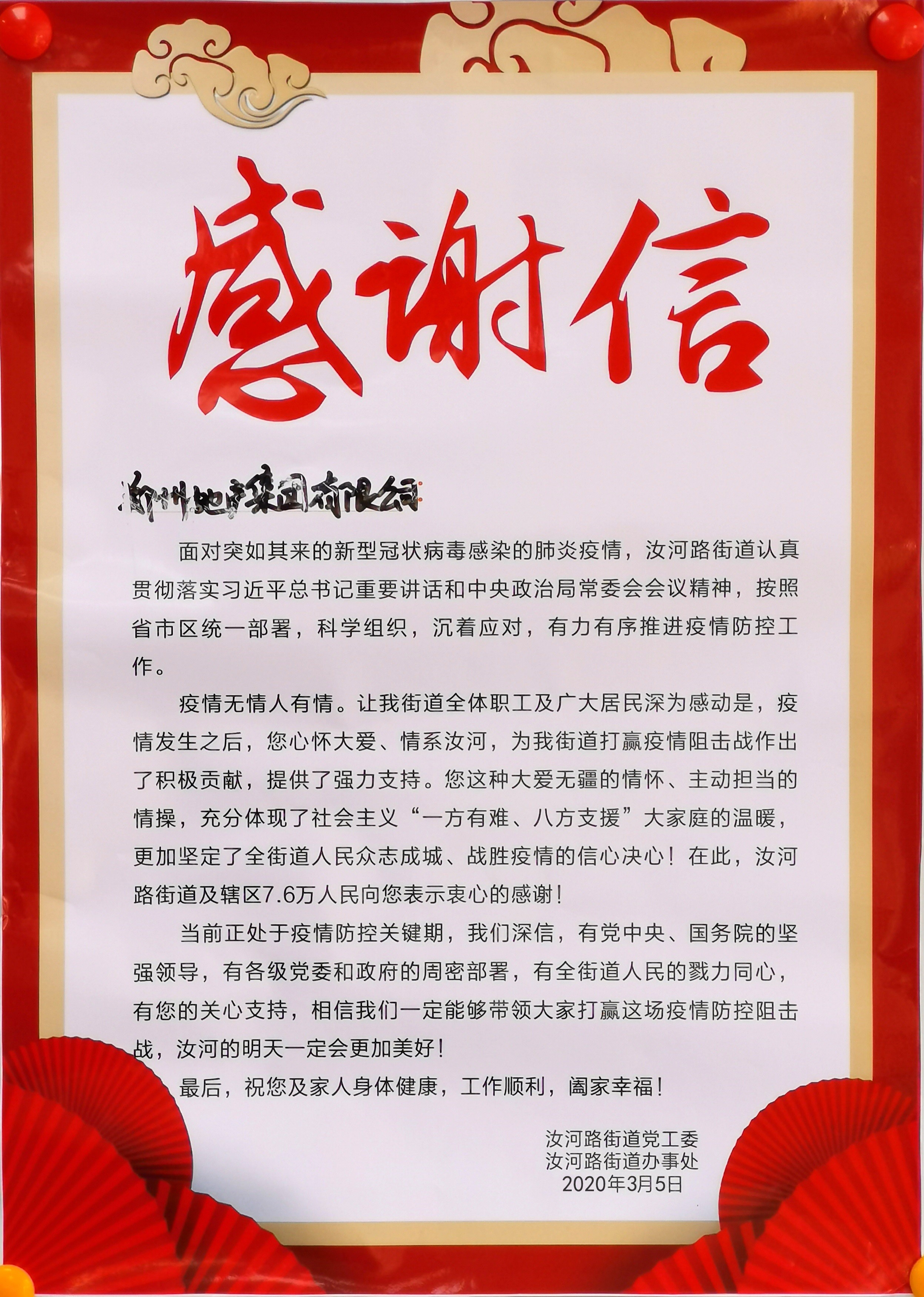 桐淮社區(qū)書記王輝代表社區(qū)工作人員和志愿者向集團(tuán)領(lǐng)導(dǎo)送上《感謝信》,并表示集團(tuán)的慰問(wèn)讓一線工作人員心里充滿了溫暖,也進(jìn)一步堅(jiān)定了開(kāi)展疫情防控的信心和決心。在地產(chǎn)集團(tuán)等社會(huì)各界的關(guān)心關(guān)注下,在無(wú)數(shù)雷鋒式志愿者的共同努力下,我們一定會(huì)打贏新冠肺炎疫情防控這場(chǎng)硬仗。